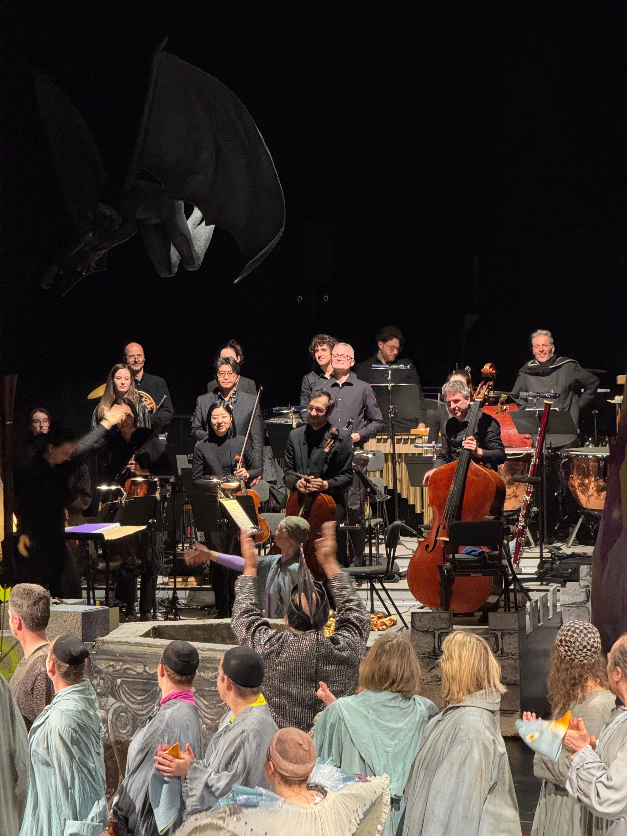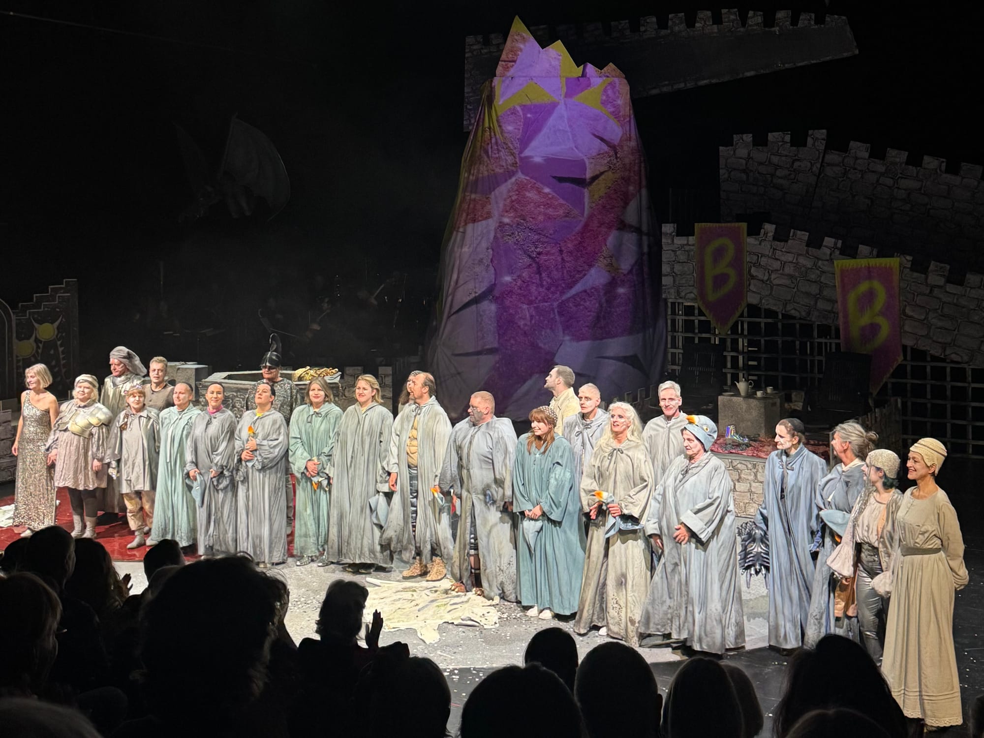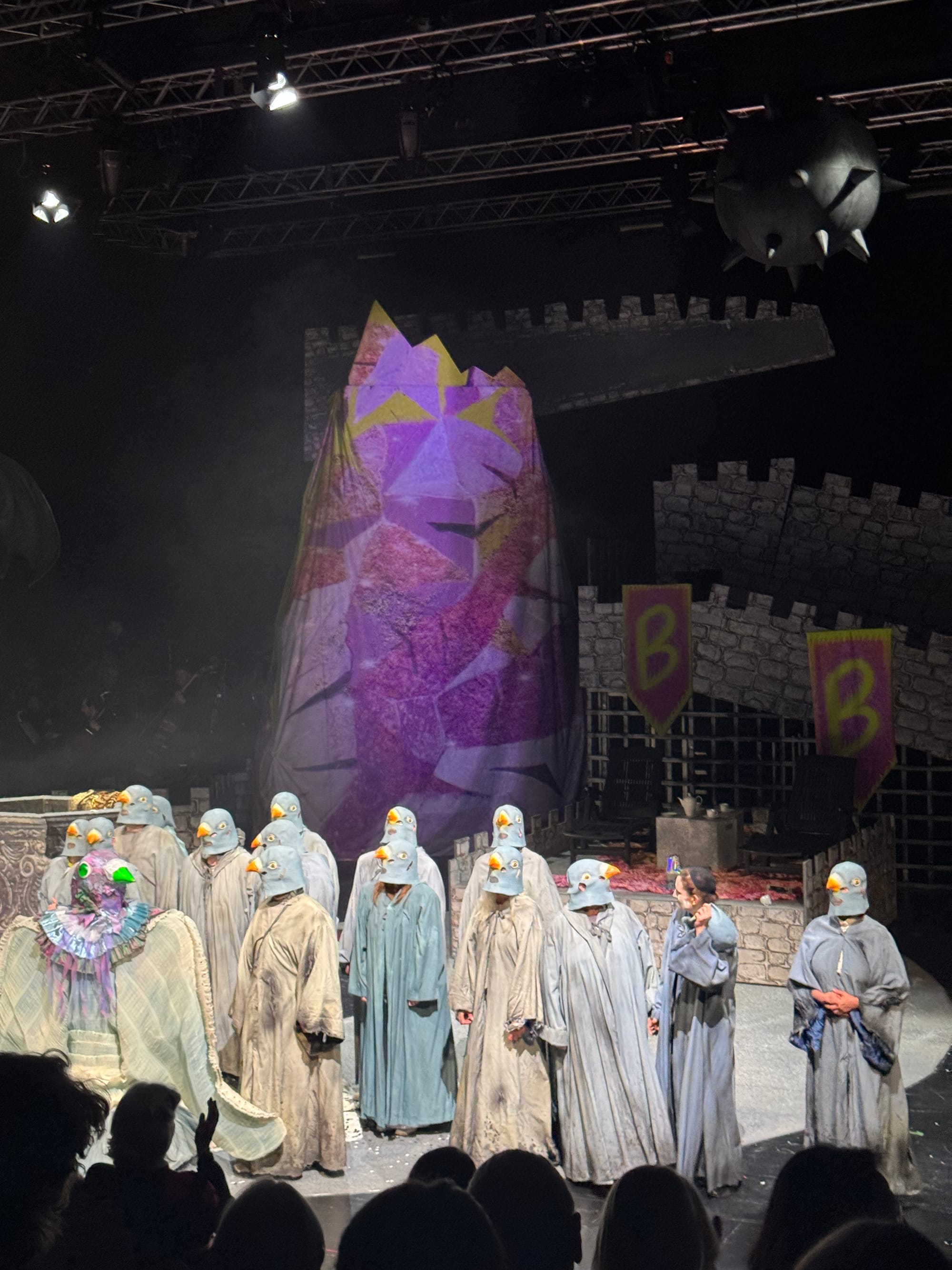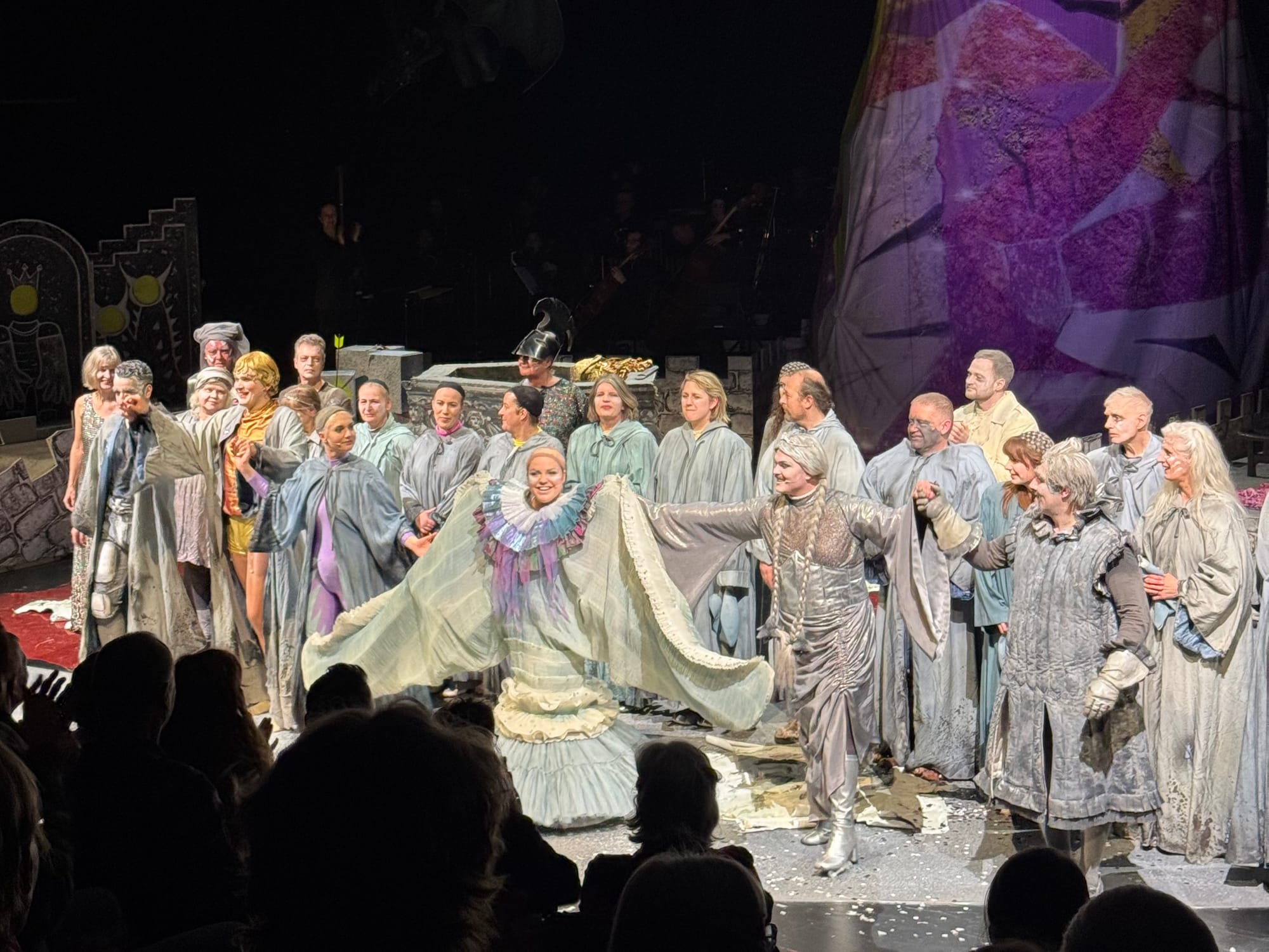 Musically, the production stays surprisingly faithful to Straus’s original composition. Even Brünhilde’s modernized, rap-infused numbers retain the cadence and rhythm of the source material. Initially, I left the performance convinced by its intent and message but unsure whether the music itself would leave a lasting impression. However, after revisiting a recording of the original DIE LUSTIGEN NIBELUNGEN, I have to acknowledge that the composition is full of bangers—mostly catchy waltzes—and even includes nods to Wagner’s own music (there’s a reason one of the characters refers to him as “our hero”). The production leans into this musical lineage right from the start, even (politely) forcing the audience to stand and sing an adapted chorus from Wagner’s TANNHÄUSER.