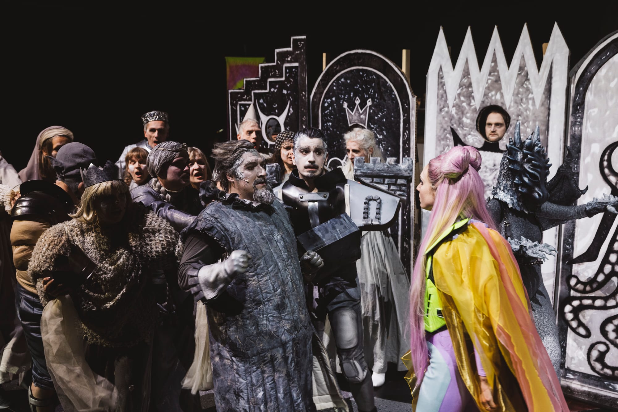 Back to AB IN DEN RING!, which presents this crisis through an absurd yet unsettlingly plausible premise: The Berlin Senate has once again slashed arts funding and has decided to merge established cultural institutions with the alternative arts scene to cut costs. The Deutsche Oper is therefore forced into a merger with the "Wilde Brünhilde", a radical performance collective determined to dismantle the elitist Wagnerian opera house. In a desperate attempt to prevent this fate, the opera house’s managing family resurrects their hero, Siegfried—who has been entombed in the opera’s stage-set warehouse—hoping to marry him into their family and secure his legendary Nibelungen wealth. Siegfried’s mission? To “defeat” Brünhilde and save the opera house. What follows is a chaotic clash of artistic ideologies, an unraveling family dynamic, and romantic entanglements in multiple character constellations.