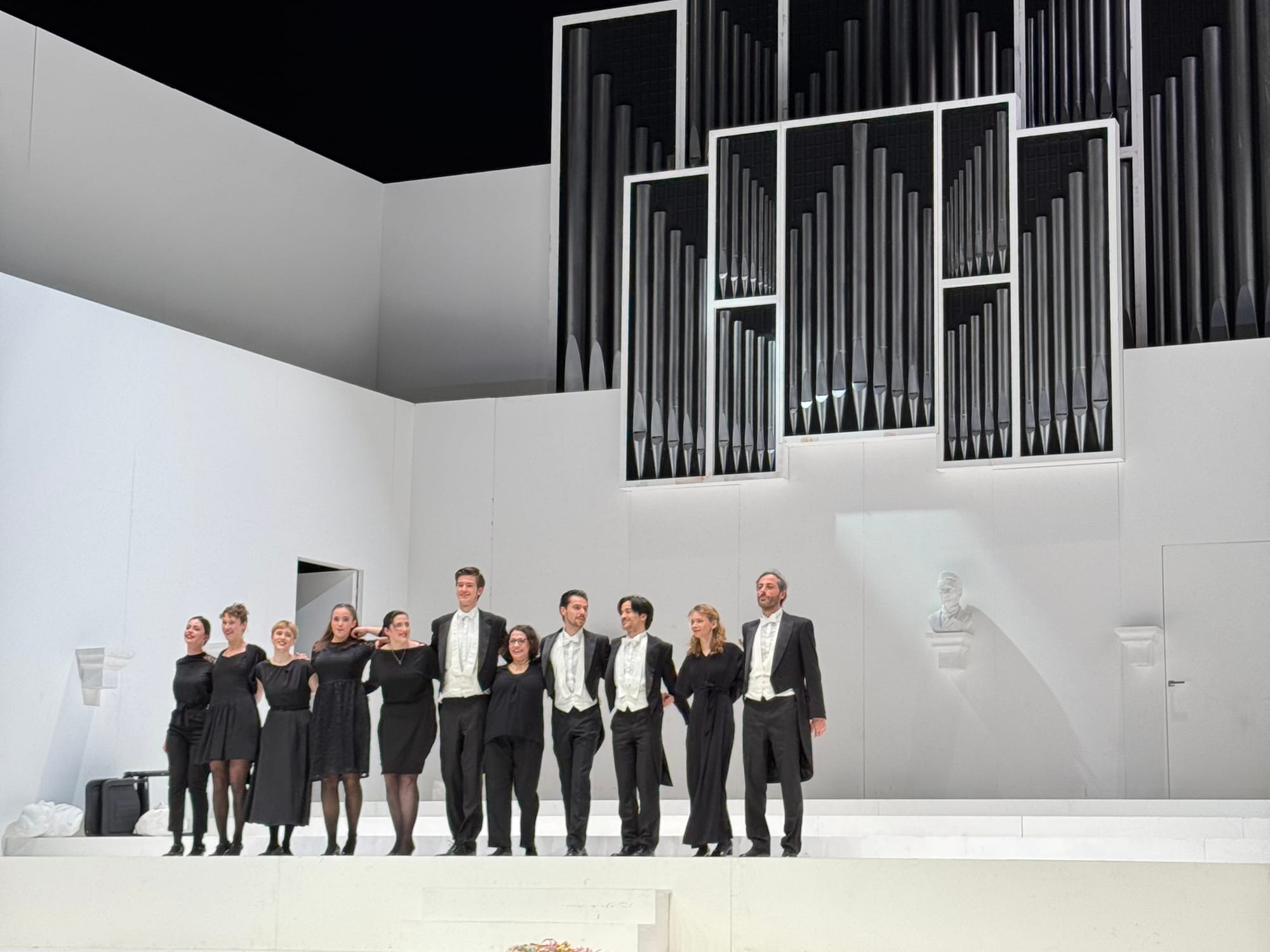 The production brings these historical, autobiographical, and musical elements together brilliantly. The single-act opera opens with a chilling prologue set to Arnold Schönberg’s BEGLEITMUSIK ZU EINER LICHTSPIELSCENE (1930), setting the tone for the opera that follows. Schönberg was Zemlinsky’s brother in law and favorite student, and a certain musical and cultural rivalry is documented between the two. On stage, we witness a dramatised account of Zemlinsky’s rejection by Schindler, played out in a bourgeois drawing room: her initial flirtation, his confusion turning to obsession, and finally, her brutal rejection. The scene ends with Schindler forcing Zemlinsky to stare at his reflection in the wall mirror—cut to black. What would Zemlinsky have thought about both Schönberg and Schindler introducing his opera? We’ll never know. How much of his own humiliation is reflected in DER ZWERG, and how much of it is driven by his jealousy of Schönberg’s success, remains unspoken.