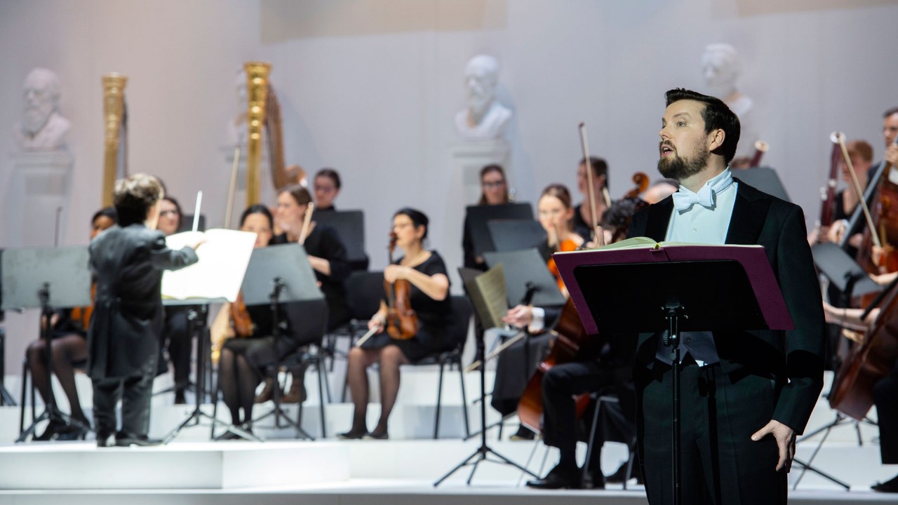 The opera itself is set not in a royal Spanish garden, but a contemporary and blindingly white concert hall. At one point, members of the Deutsche Oper orchestra join the dwarf in a performance for the Infanta, only to suddenly turn on him, smashing their instruments in a fit of rage. The setting and particularly the acting of the Infanta become a suffocating metaphor for the detachment of those in power, oblivious to the suffering they perpetuate