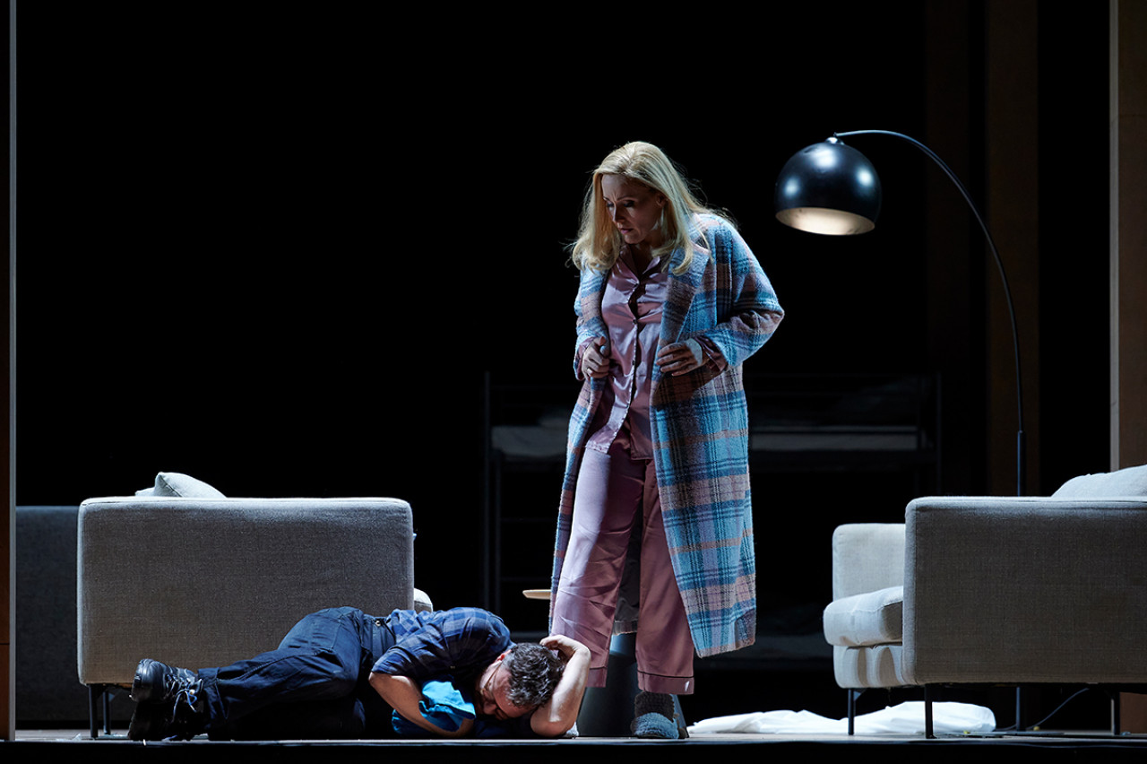 Kratzer reinterprets the opera’s mystical world into a grounded, almost mundane reality: two couples struggle with relationship conflicts that feel all too familiar. The Kaiserin and Kaiser face mounting pressure from her parents to have children despite their struggles with infertility, while the Färber and Färberin are trapped in an unhappy marriage—he longs for children, she does not. Their fates become entangled when the Kaiserin, under the influence of her manipulative mother (the Amme), considers the Färberin as a potential surrogate. What was once a tale of magic and shadows becomes a brutally honest meditation on reproductive autonomy, the pressures of tradition, and the evolving landscape of relationships.