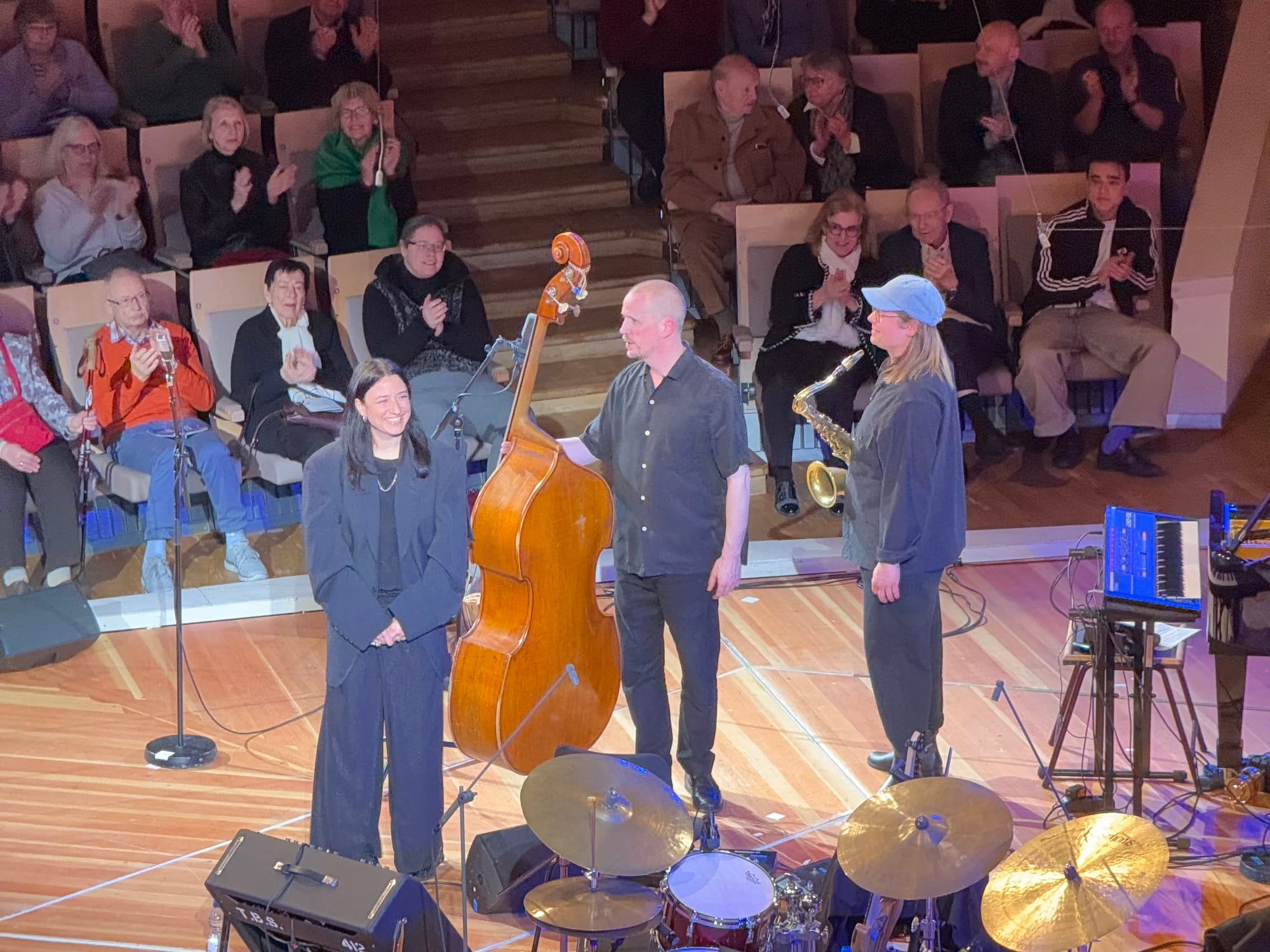 The evening culminated in an encore that brought all three ensembles together, offering a mesmerizing display of jazz’s improvisational nature. While I had struggled at times to discern what was fully rehearsed versus what was shaped in the moment—especially since some tracks performed were from newly-released albums—this final number made it undeniably clear: jazz is a conversation. Singer Lucia Cadotsch took the lead, seamlessly signaling the band when to let loose and when to rein it back in, much like a conductor with an orchestra—but looser, freer, allowing space for spontaneity. It was a striking reminder of how alive music-making is in jazz: a dynamic, in-the-moment process of listening, responding, and shaping sound together.