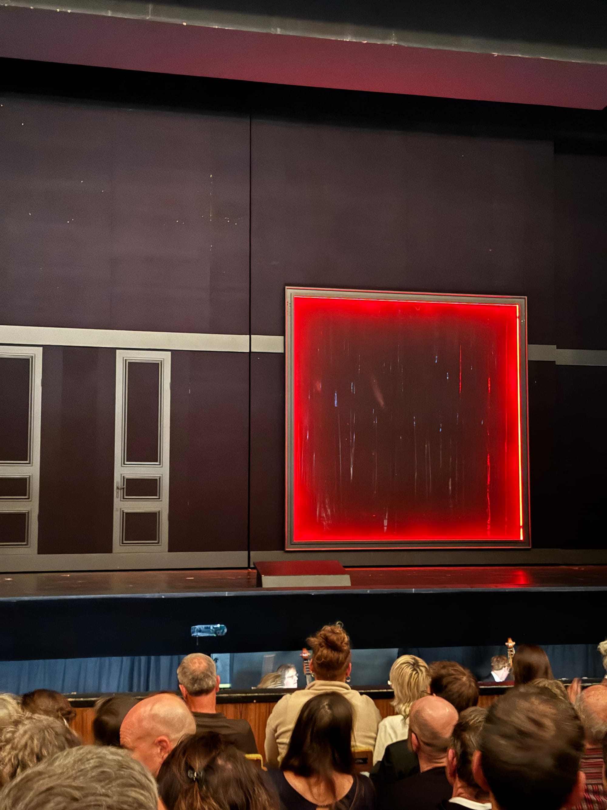 The modular set, made of sliding rooms and walls, provides dynamic possibilities for staging, from adjoining bedrooms to expansive banquet halls. Its versatility shines during moments of supernatural tension, with walls turning transparent under specific lighting or appearing malleable as ghostly figures emerge (think Stranger Things). However, the ambitious design sometimes backfires; noisy set changes and even audible stagehand instructions momentarily break the on-stage tension.