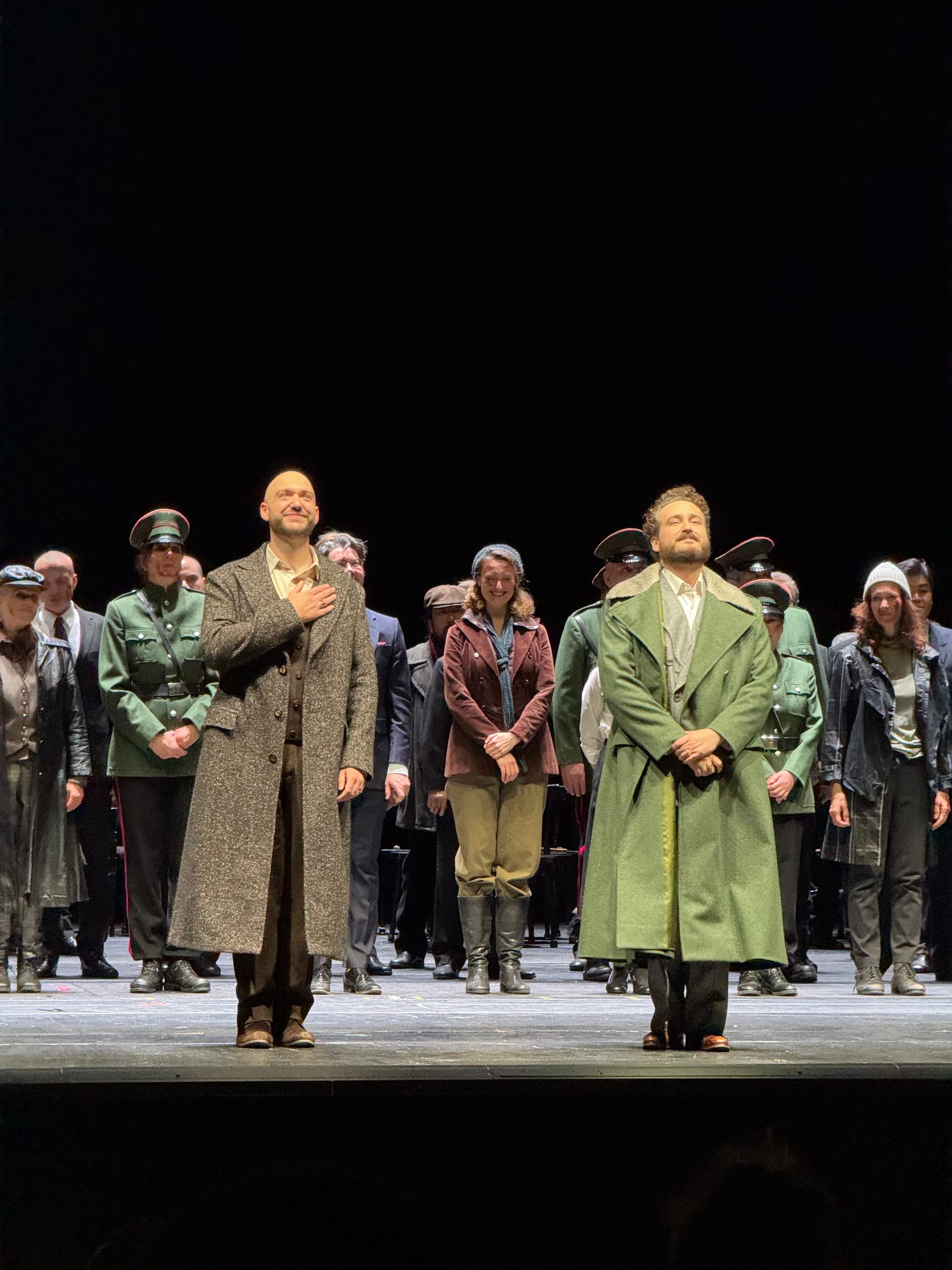 Visually, the production leverages live video projections to add depth onto the onstage action. At times, the camera shows closeups of singers to emphasize their emotiveness; at times it creates layers of simultaneous action by showing a scene unrelated to the immediate musical focus. This creates an engaging, almost stressful FOMO effect: figuring out where exactly to look is a challenging but exciting endeavor.