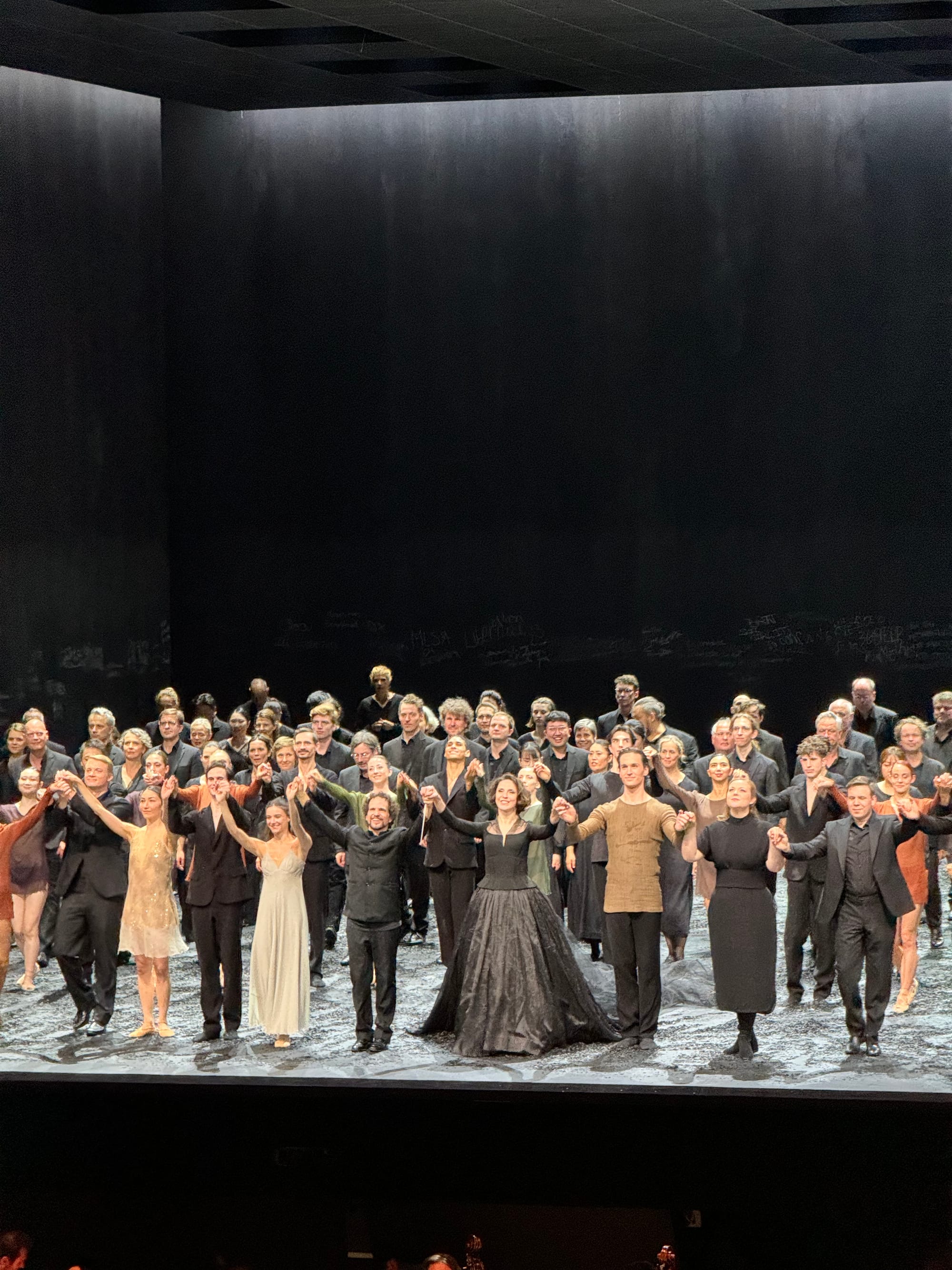 All takes place on a stage that plays with light and darkness, regality and dirt, extreme minimalism and yet grand scenery. I was happy to see moments which I saw as non-heteronormative (perchance even queer, happy Pride) representation—which seemed effortlessly and naturally juxtaposed with the music, considering the origin of the Requiem in Catholic liturgy.