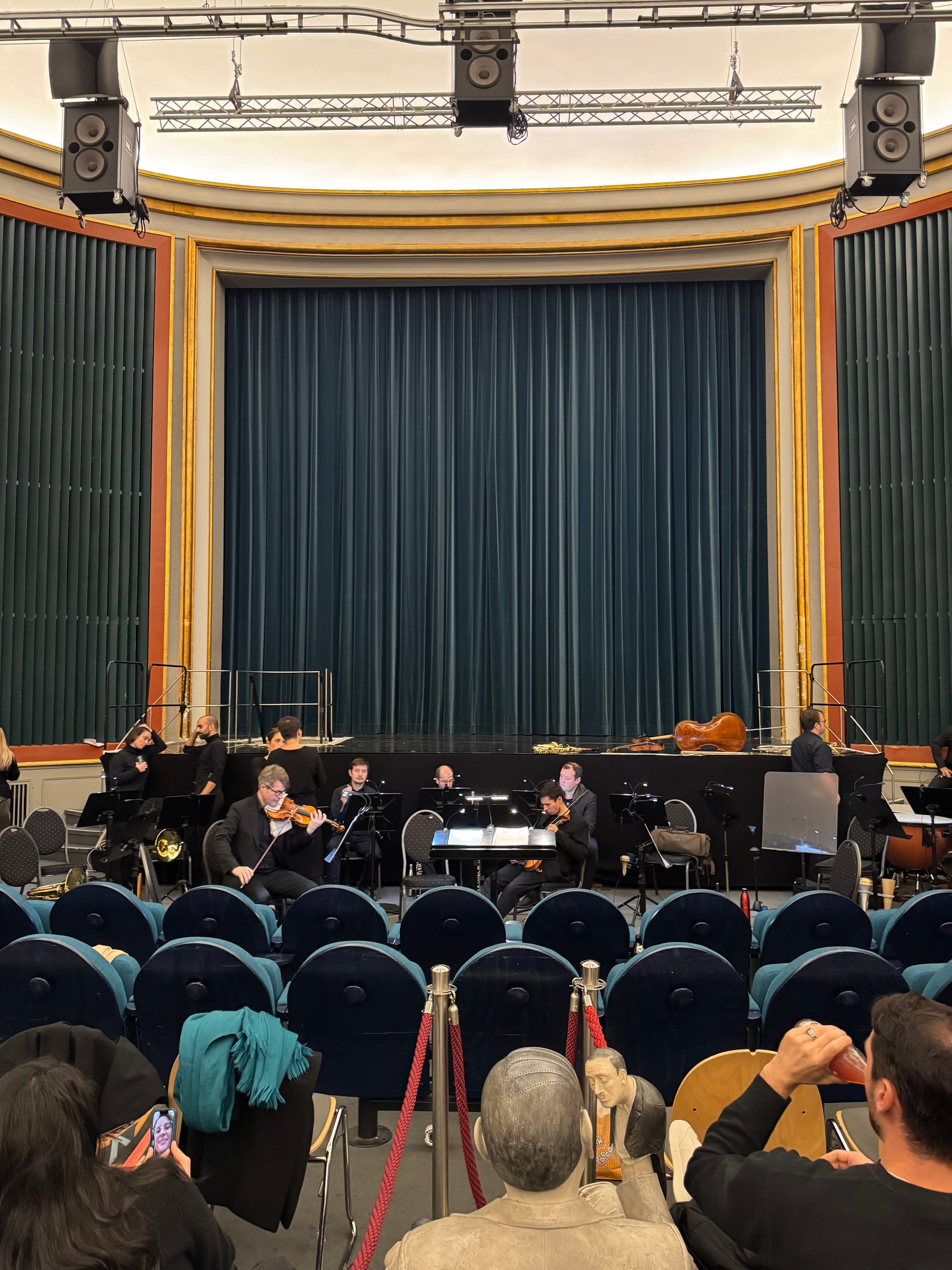 Accompanying a silent movie, this is obviously its main function. And yet I find that this music, almost one hundred years later, still rivals the film scores we most love today (thinking personally of Dune 2). I wager that even without the movie playing, the evening would still have been an amazing musical experience, not unlike a performance at the Konzerthaus: in the score, Huppertz references other symphonic composition (I definitely heard some Tchaikovsky in there, not just with the 1812/Marseillaise reference), and the orchestra gives it their all for almost two and a half hours.