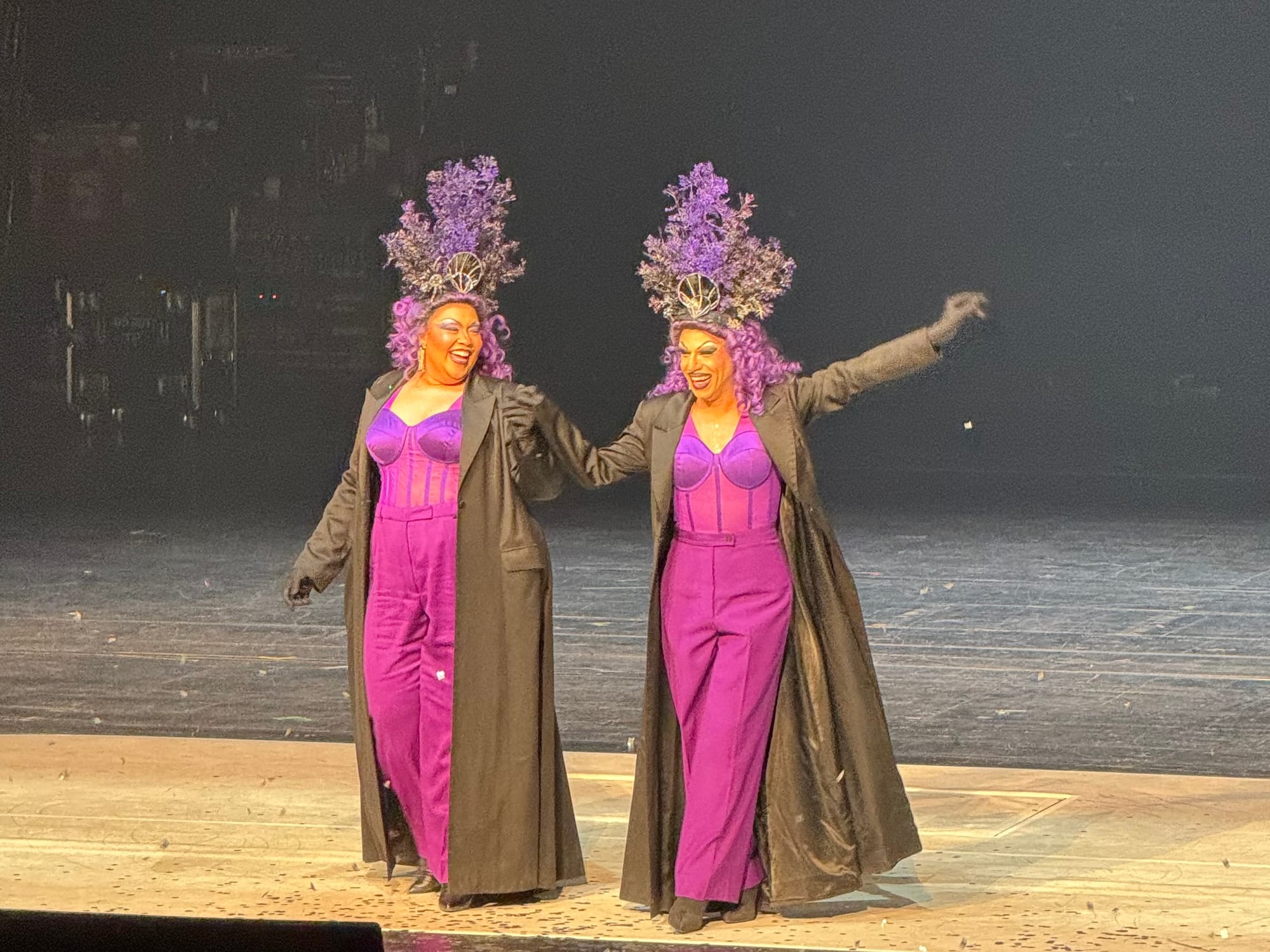 As the story unfolds, the relationship between the drag queens and their respective singers evolves. Initially distant, the two worlds collide dramatically when Rusalka undergoes her transformation from nymph to woman. In this pivotal moment, the singers descend into the watery realm, directly interacting with their drag counterparts for the first time. The visual language of this transformation is deeply reminiscent of Disney’s The Little Mermaid—but with a twist. The Jezibabas, dressed in rich purple hues evocative of queer icon Ursula, cast their spell around Rusalka. Of course, Ursula herself was famously inspired by 1970s drag legend Divine, creating yet another layer of queer lineage within the performance. As the spell takes hold, Rusalka signs her name, sealing her fate—one we recognize from countless versions of this fairytale: if she cannot make the Prince love her, she will be doomed.