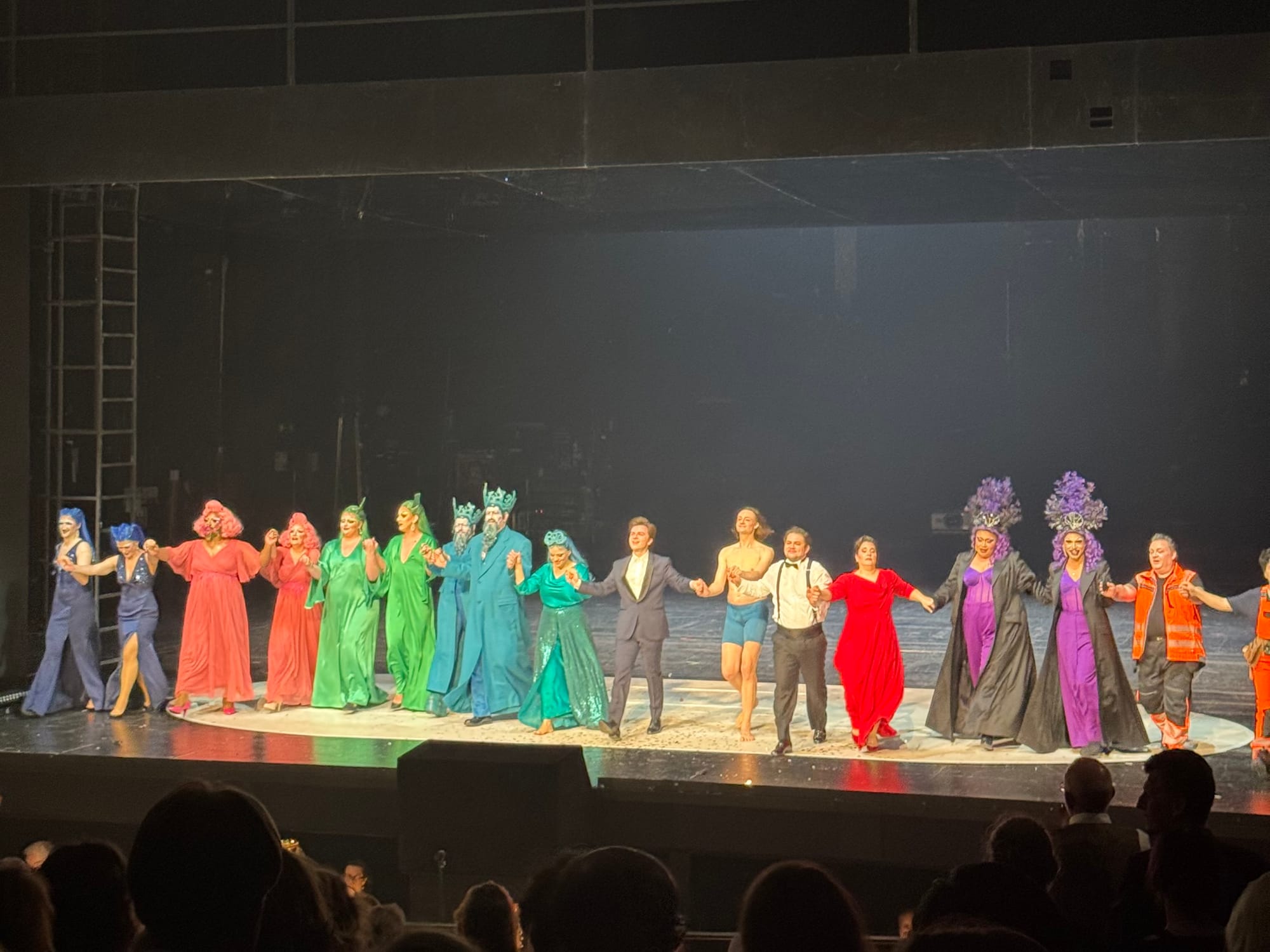 What makes this production so unique is its double casting of certain roles. All inhabitants of the mystical nymph world are portrayed not only by singers but also by drag queens who embody them physically onstage. The visual impact is stunning: the stage itself becomes a living lip sync performance, reminiscent of a grand finale of the global phenomenon of RuPaul's Drag Race. Yet, in this case, the challenge is not among the drag queens themselves but between them and the human world—a world that refuses to accept them. The nymphs become an unmistakable symbol of otherness, standing in stark contrast to “the human world,” which in turn represents the dominant heteronormative and binary society.