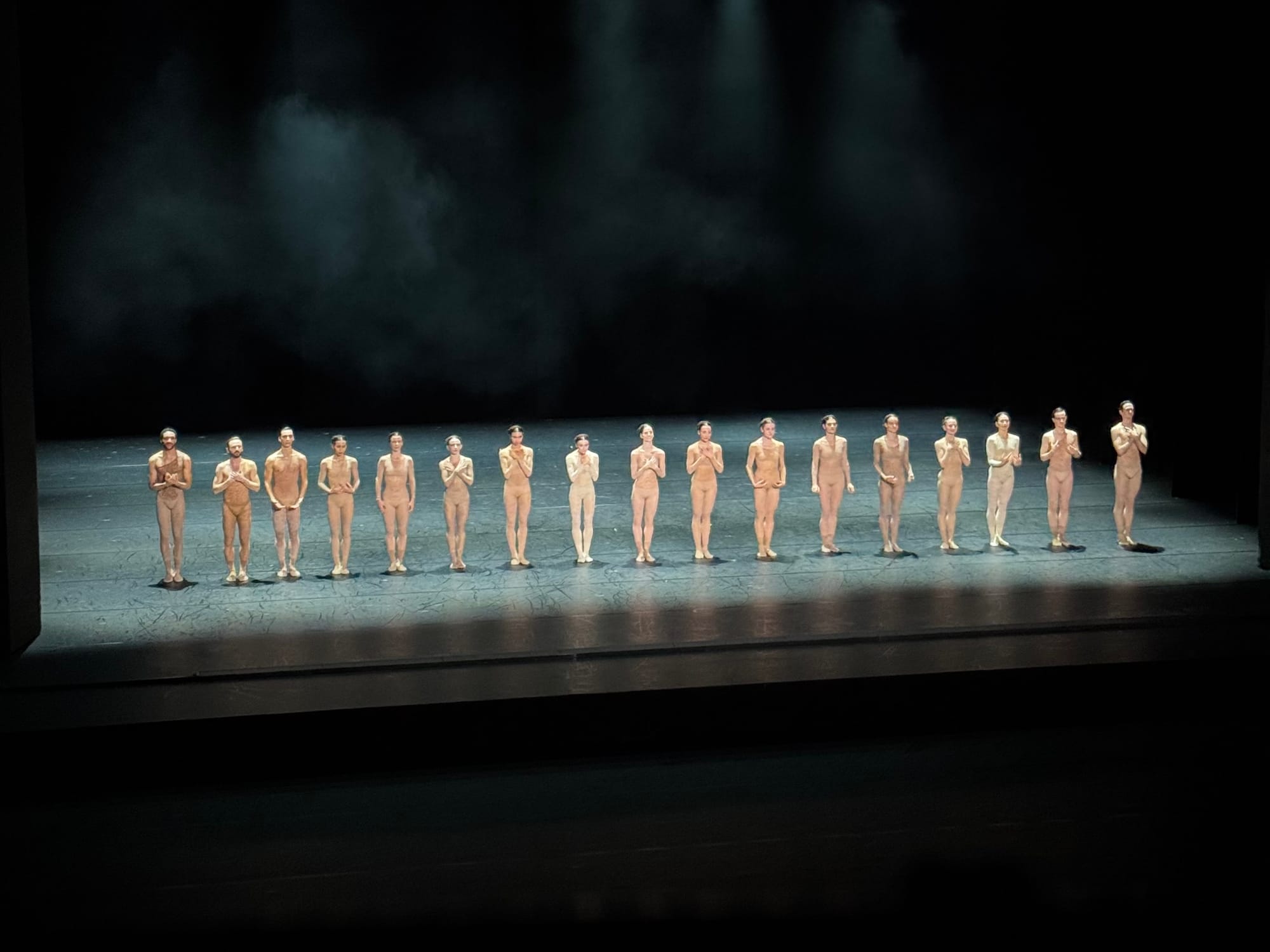 SAABA (Sharon Eyal) is a hyper rhythmic and sharp dance set to music somewhere between electronic and techno (not my area of expertise tbh). The dancing is incredibly angular but simultaneously smooth, with the dancers moving across the stage akin to flamingoes moving across water. Part of what makes this piece special are the custom Dior costumes made by Maria Grazia Chiuri from Dior. These fine, almost lacy bodices are skin-tight and give the individual members of the company an almost androgynous appearance.